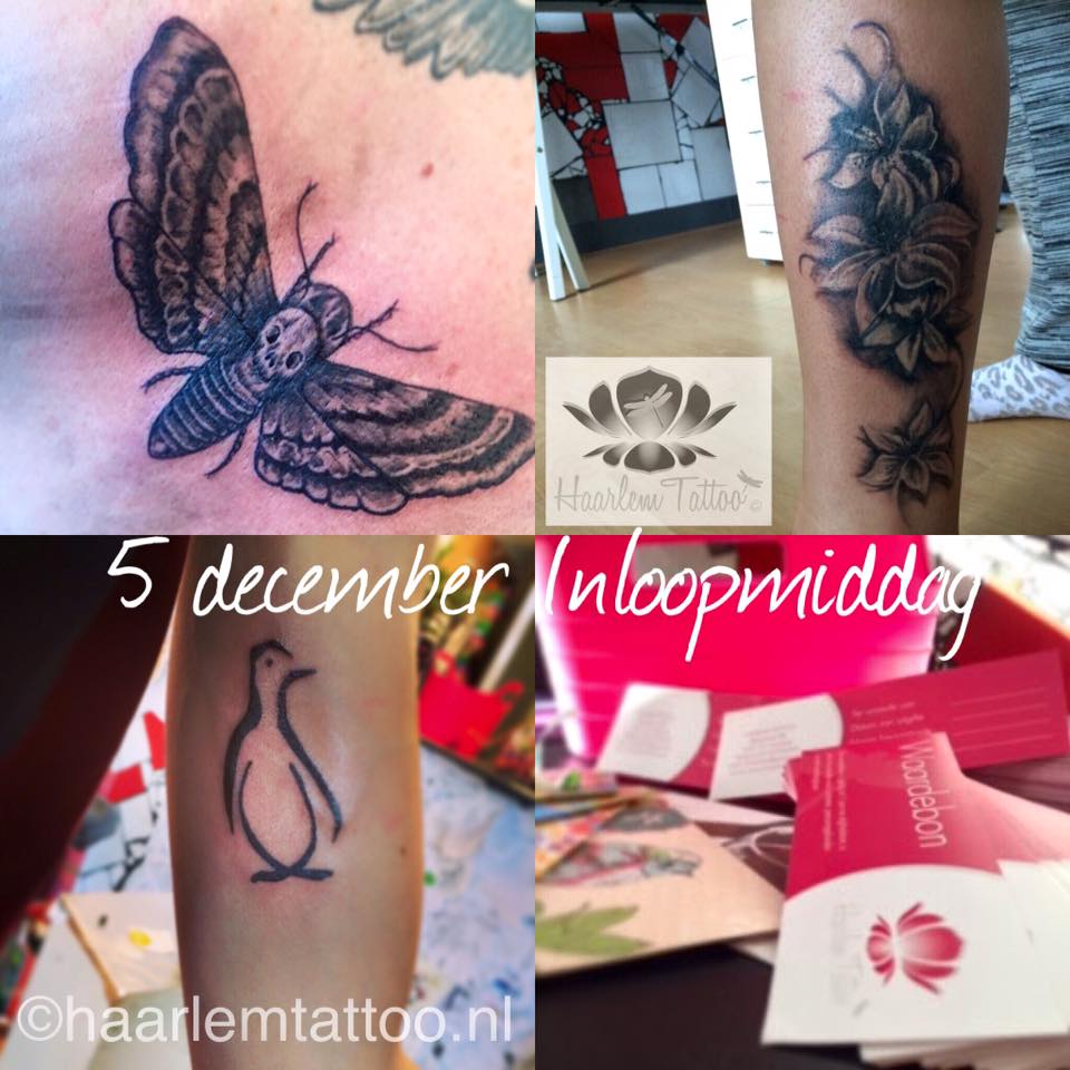 Tussen 12.00 en 15.00 uur is er een inloopmiddag bij Haarlem Tattoo. Wil je op het laatste moment je kadobon voor de Sint nog halen. Of zoek je info en wil je praten de mogelijkheden van je tattoo? Dan is deze zaterdagmiddag de mogelijkheid.