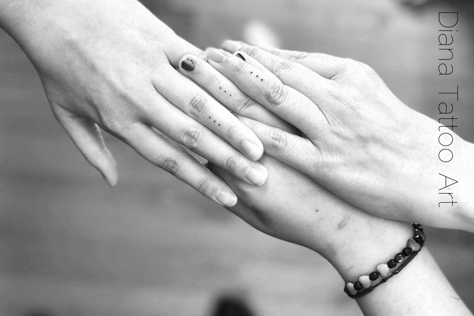 ‘We willen het heel graag een kans geven. Een ingewikkelde vorm is niet nodig. Gewoon drie kleine stippen onder elkaar. Dat Haarlem Tattoo op het eindresultaat geen garanties kan geven en adviseert de tatoeages, hoe klein ook, na te laten lopen, is helder. Ondanks, of misschien wel dankzij de heldere uitleg van Diana besluiten ze ervoor te gaan. En even later lopen er drie gelukkige vrouwen de tattoostudio uit; elke vrouw met drie sierlijke stipjes op een van de vingers.